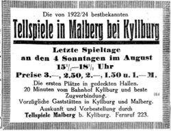 - Im Sommer Tellspiele in Malberg
